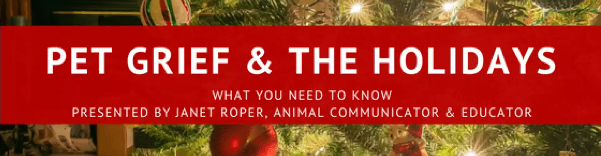 I encourage you to join me in this online workshop "Grieving Your Pet Over the Holidays". In the workshops you'll learn ways to help you authentically cope with your grief while reconciling the holiday spirit, how to cope with holiday traditions and ways you can memorialize your pet. You will have a chance at the end of the workshops to ask questions and share your stories.