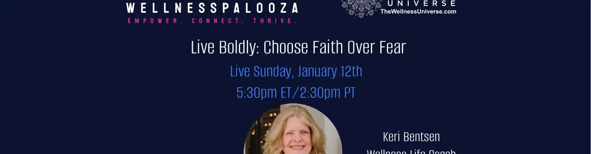 Üdvözöljük a The Wellness Universe Wellnesspalooza 2025 40. ülésén. Ezen az erőt adó workshopon Keri Bentsen, Wellness Life Coach közreműködésével megvizsgáljuk a hit szándékos választását a félelem helyett, segít megérteni, mi okozza a félelmet, és hogyan befolyásolja az életedet.